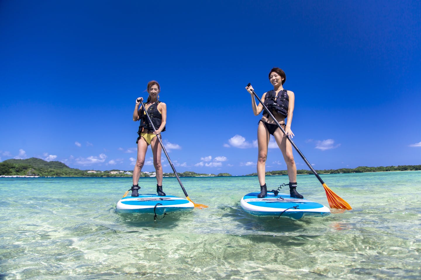 シュノーケリングやSUPは、ライフジャケット着用が基本なので、泳げない人でも安心して参加できます。(参加者の半分以上が初心者)