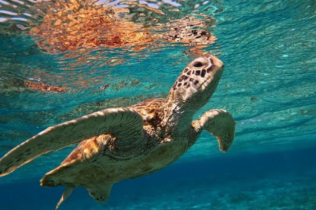 ビーチエリアの南側(キャンプ場付近)では、早朝や満潮時にウミガメが姿を見せることが多く、運が良ければ浅瀬で優雅に泳ぐ姿を間近で見ることができます。